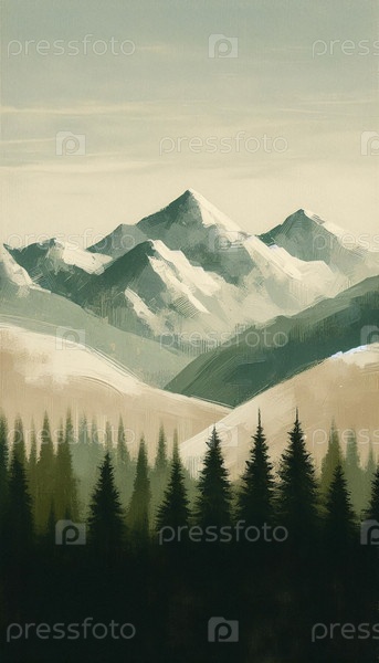 Текстированный художественный пейзаж горного ландшафта, Ai generated image