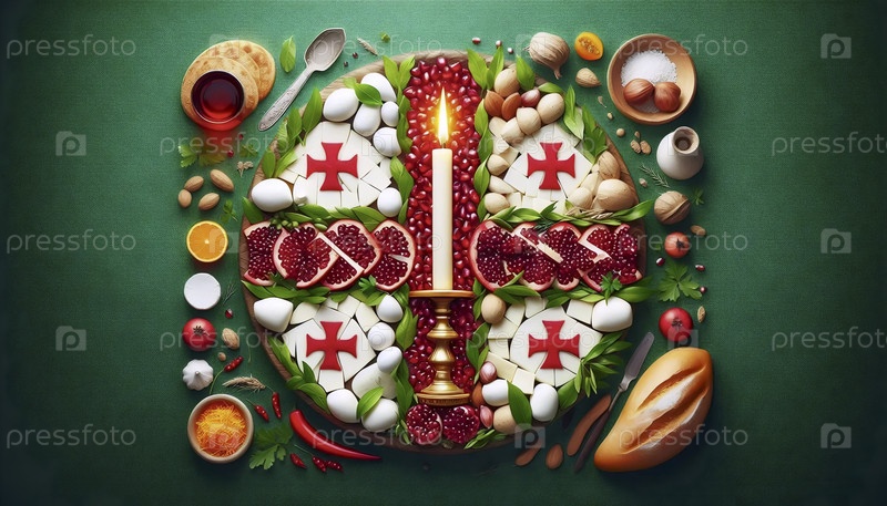 Грузинский флаг в традиции праздника и хлеба, Ai generated image