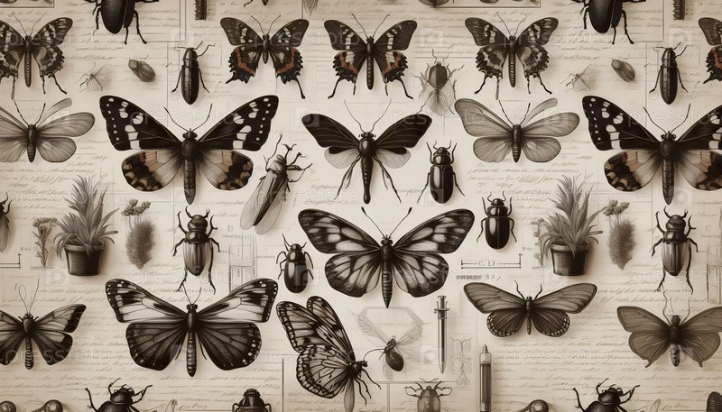 A botanical pattern Butterflies Beetles Vintage Insects, Ai generated image Ботанический шаблон Бабочки жуки Винтажные насекомые, Ай создал изображение
