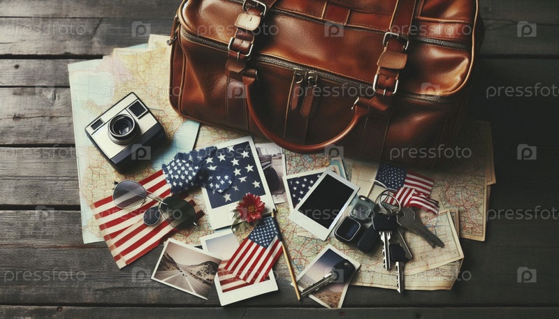 Товары для путешествий, включая багаж, паспорт и билеты на место назначения, Ai generated image