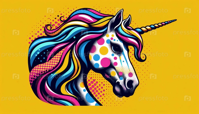 Единорог в стиле поп-арта, Ai generated image