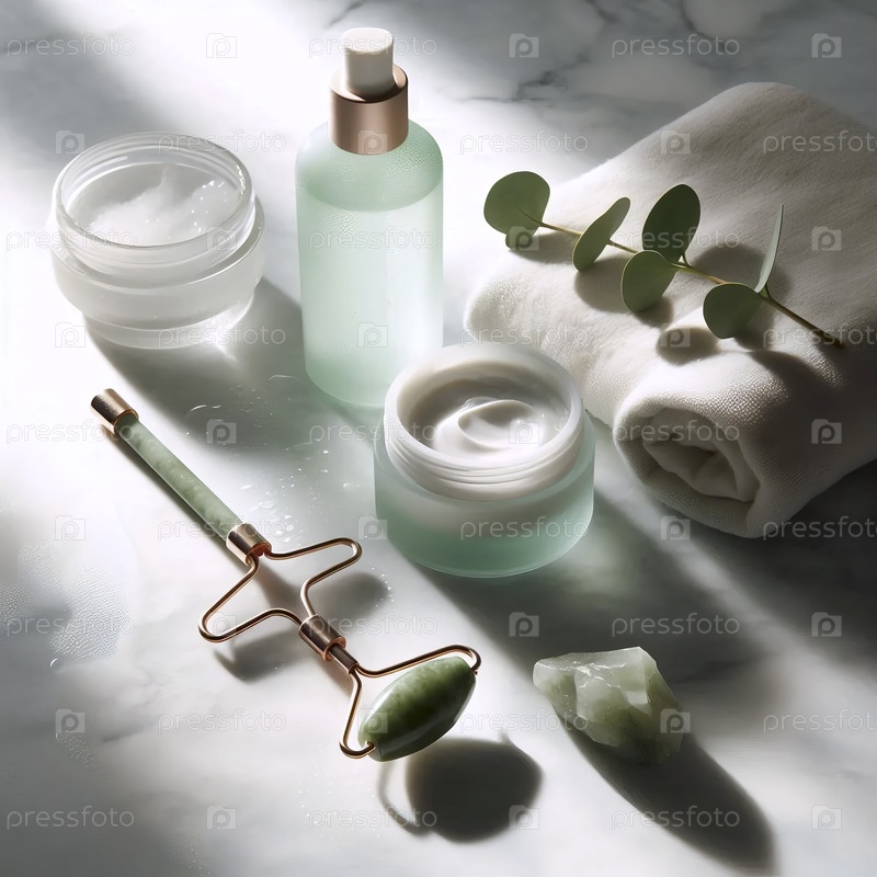 Спокойный утренний ритуал ухода за кожей с естественным светом и минималистическими продуктами, Ai generated image