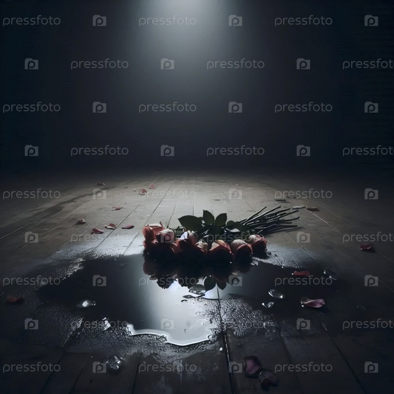 Букет у ее ног в луже тающего льда, Ай создала изображение
