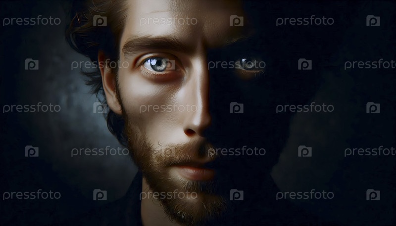 Трехчетверточный портрет, освещенный капризным классическим освещением Рембрандта, Ai generated image