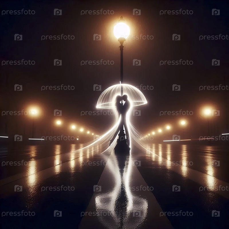 Фото длительной экспозиции пары, танцующей на улице под дождем, Ai generated image