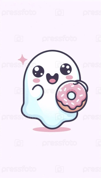 Призрак кавайи с художественным принтом пончиков, Ai generated image