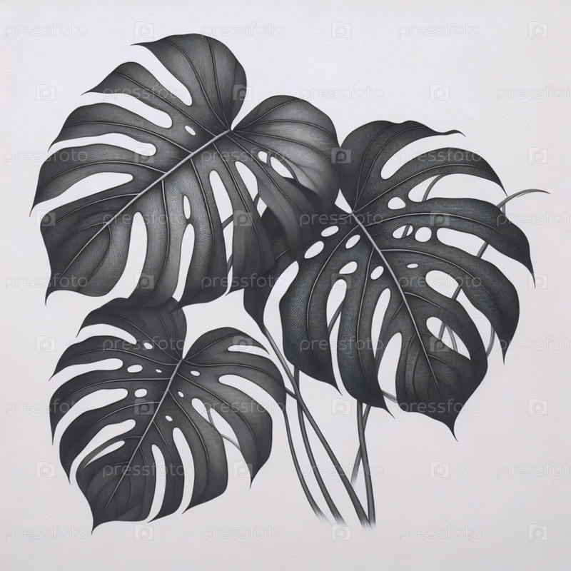 Ботаническая художественная печать линий из листьев монстров, Ai generated image