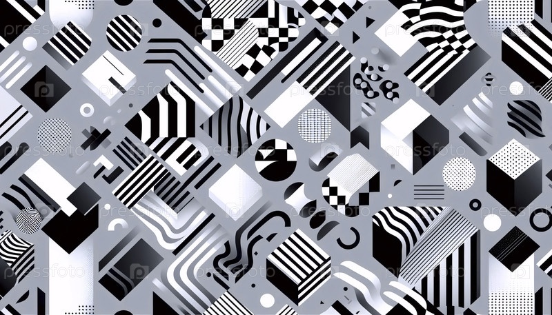 черно-белый графический образ, вдохновленный мемфисом