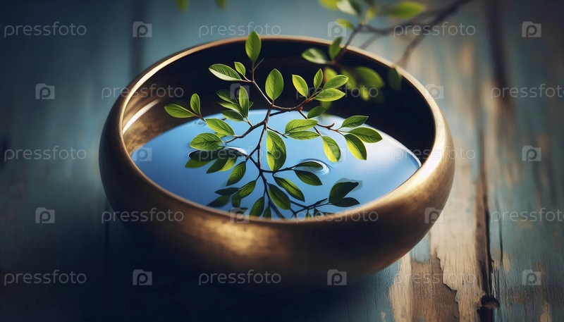 Отражение дерева в миске с неподвижной водой, Ai generated image
