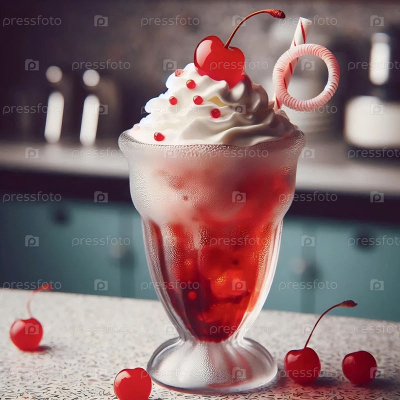 Винтажный молочный коктейль, подаваемый в классическом столовом стакане 1950-х годов Ai generated image