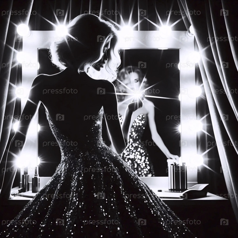 Женщина наносит помаду в зеркало раздевалки, Ai generated image