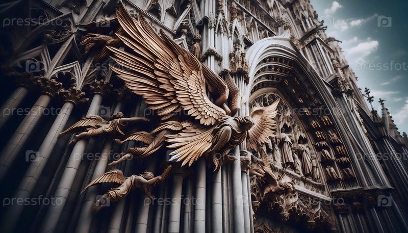 Кафедральный шпиль, трансформирующийся в восходящих ангелов на закате солнца, Ai generated image