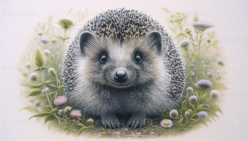 A curious hedgehog ink drawing art print, Ай создал изображение
