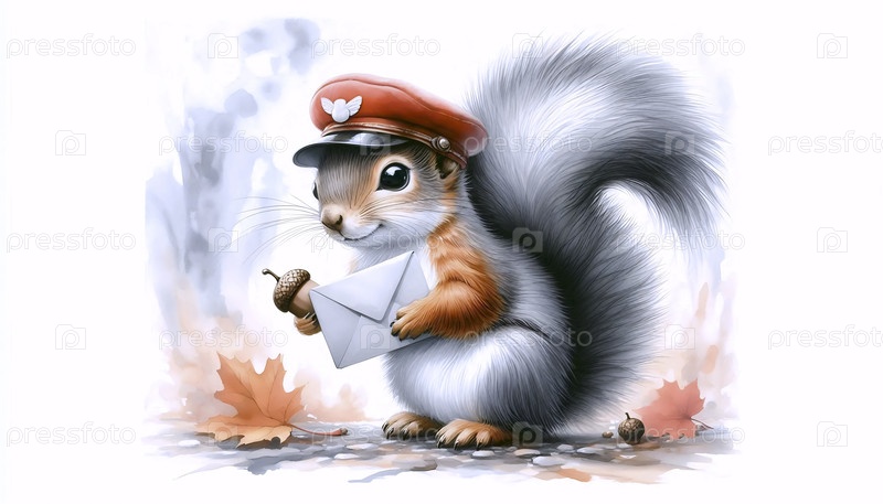 Белок доставляет письмо акварельная художественная печать, Ai generated image