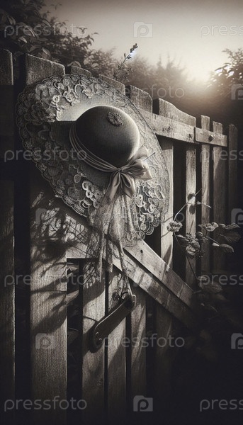 Женская шляпа с завесой, прикрепленная к воротам сада, Ai generated image