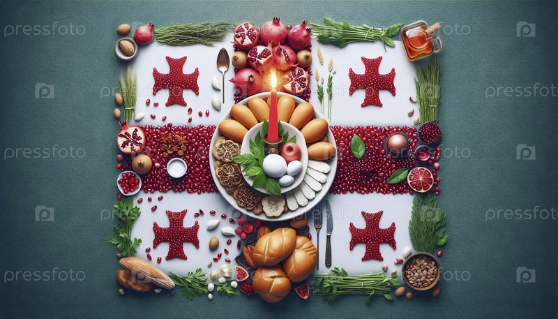 Грузинский флаг в традиции праздника и хлеба, Ai generated image