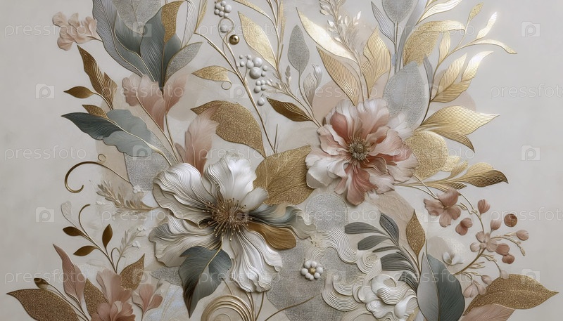 Абстрактный цветочный фон современное золото и пастельное ботаническое, Ai generated image