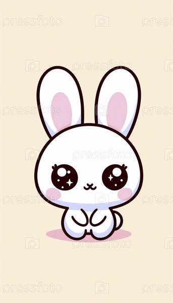 Простой кавайский персонаж краснеющего кролика, Ai generated image