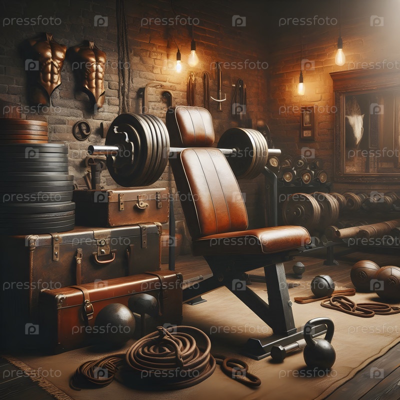 Профессиональный интерьер тренажерного зала с оборудованием для тренировок, Ai created image