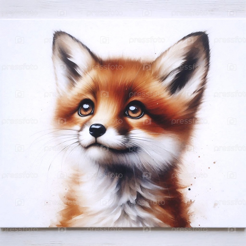 Pleading Fox акварельный художественный печат, Ai generated image