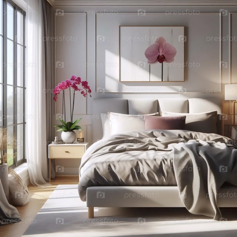 Орхидея в интерьере спальни, Ai generated image