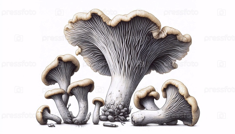Chanterelle Family A ink drawing art print, Ai generated image Семья Шантерэлл чернила рисунок художественный печат, созданное изображение