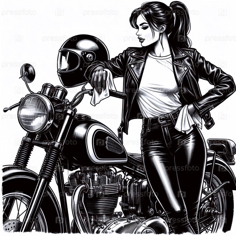 Пинальная девушка в роли мотоциклиста, опирающегося на старый велосипед, Ai generated image
