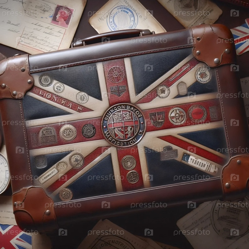Образец Union Jack на старинном кожаном чемодане, Ai generated image