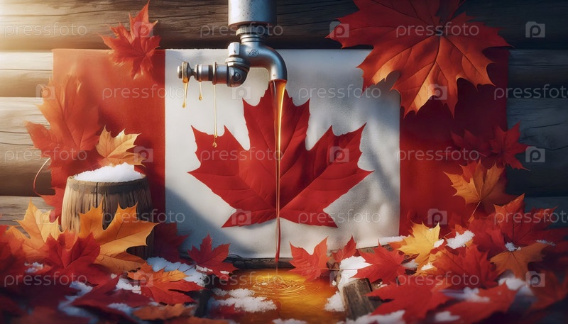 Канадский флаг в производстве кленового сиропа, Ai generated image