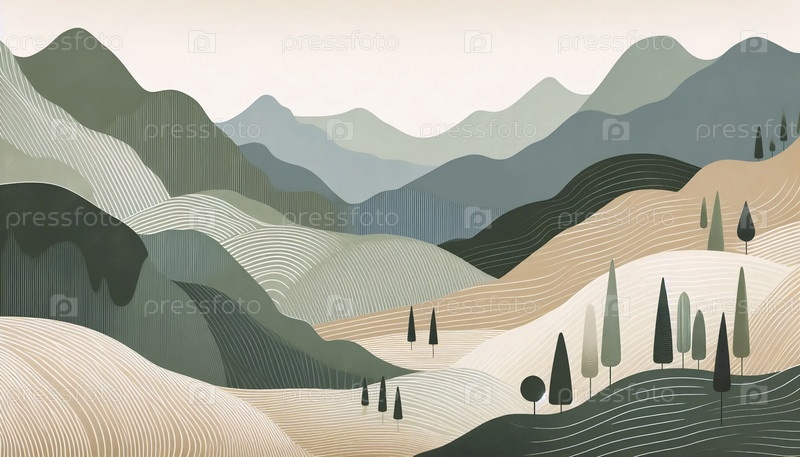 Современный горный пейзаж в нейтральных тонах, Ai generated image