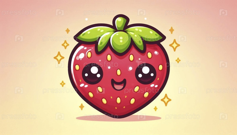 Милая клубника кавайи с веселым лицом, Ai generated image