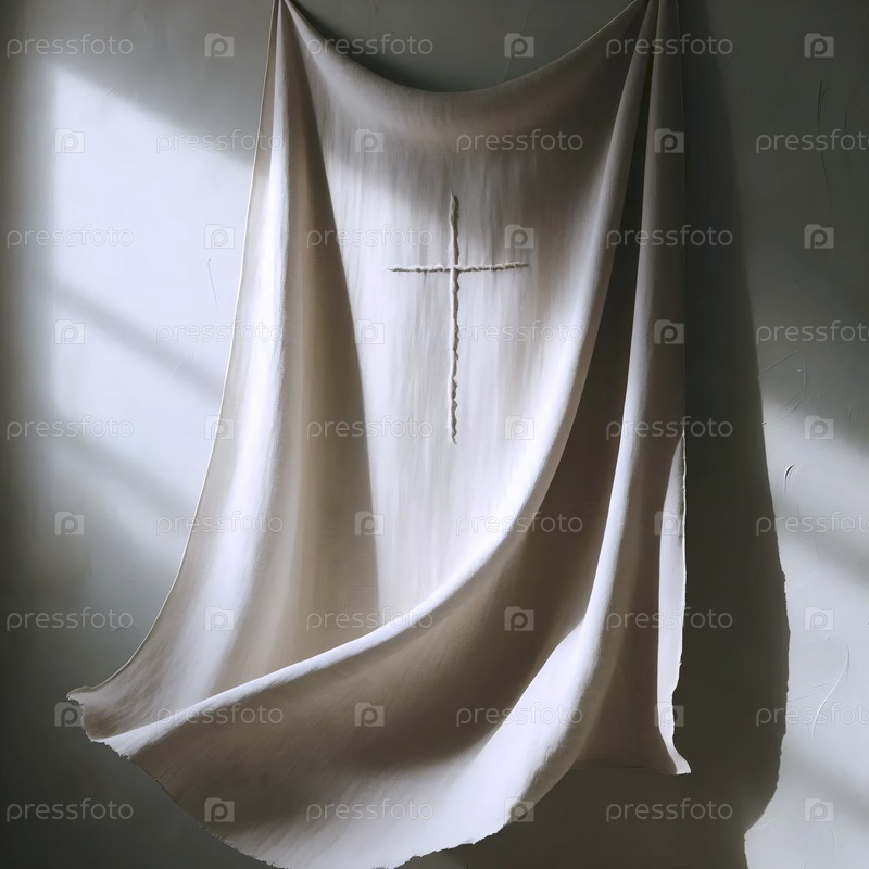 На стене из льняного дзен-бохо висит минималистический крест, Ai generated image
