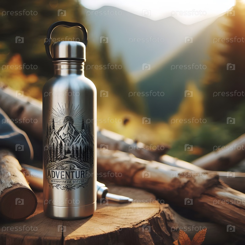 Алюминиевая бутылка с водой, Ai-генерированное изображение