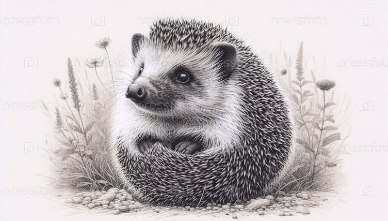 A curious hedgehog ink drawing art print, Ай создал изображение