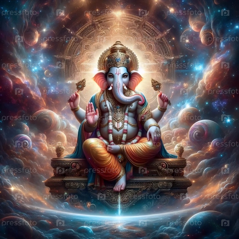 Господь Ганеша в космическом пространстве, Ai generated image A