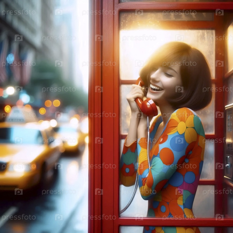 Девушка смеется в телефонной будке, Ai generated image A