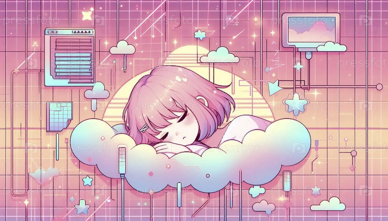 Каваи-сцена девушки, мечтающей о цифровом облаке, Ai generated image