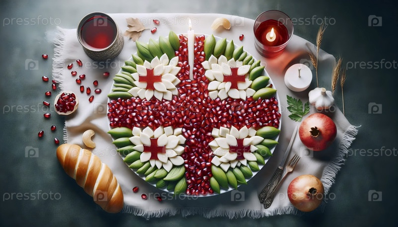 Грузинский флаг в традиции праздника и хлеба, Ai generated image