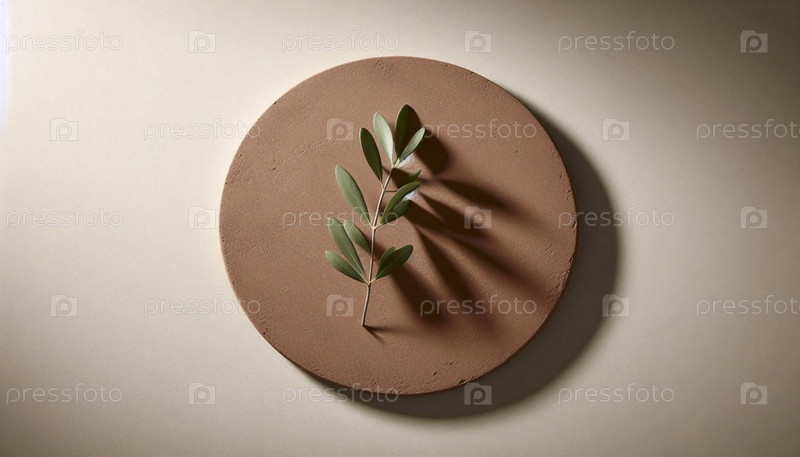 Круг оливковой ветви на терракотовой глине, Ai generated image