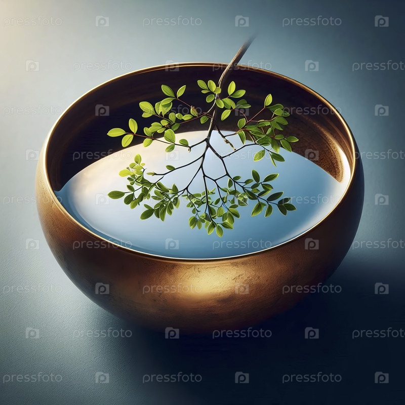 Отражение дерева в миске с неподвижной водой, Ai generated image