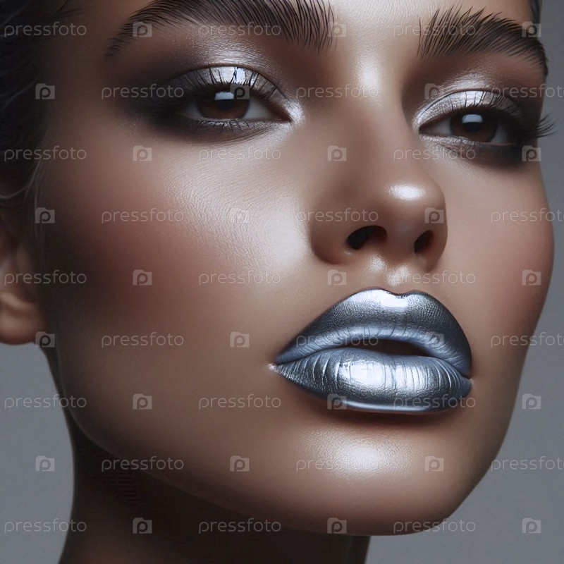 Портрет с металлическими серебряными губами, Ai generated image