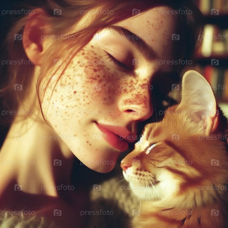 Интимный крупный план женщины с котом, Ай создал изображение