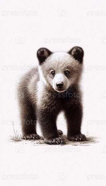 чернильный рисунок медвежьего детеныша