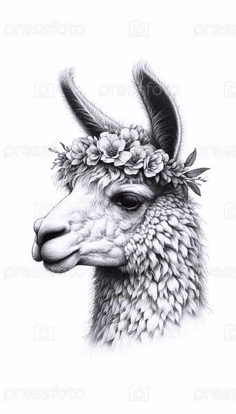 Ллама с цветочными чернилами рисование художественная печать, Ai generated image