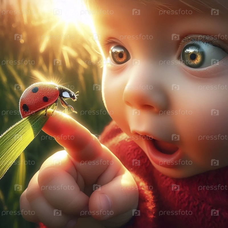 Первая встреча малыша с летающей бабочкой, Ai generated image