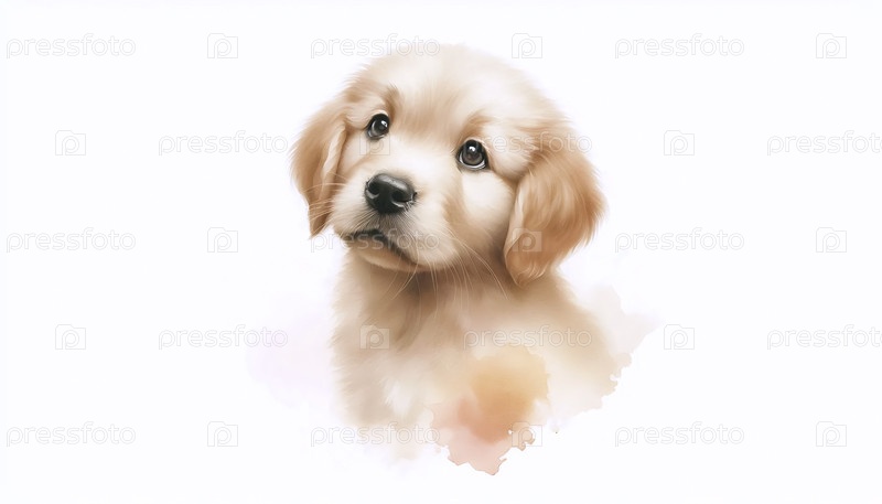 Pretty Puppy акварельный художественный печат, Ai generated image