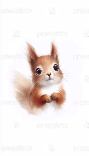 А Sweet Squirrel акварельный художественный печат, Ai generated image
