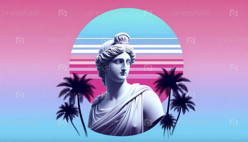 А ретро vaporwave эстетический цифровой ландшафт, Ai создал изображение