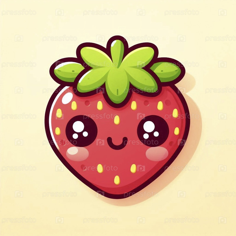 Милая клубника кавайи с веселым лицом, Ai generated image