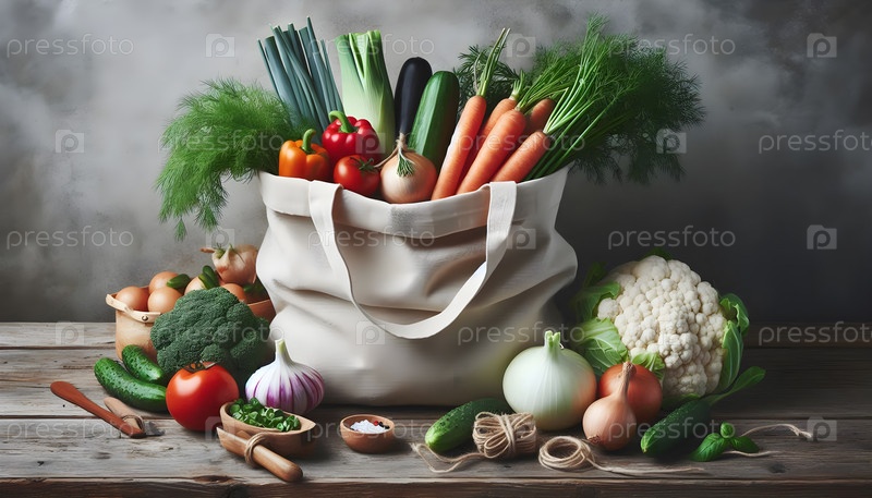Сумка с органическими хлопковыми продуктами, изображение создано AI
